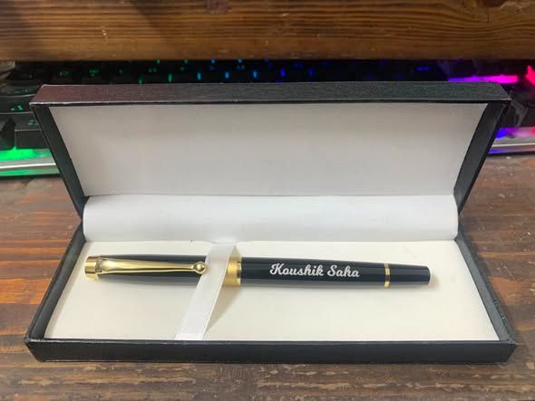 Beautiful Laser engraved Imported Metal Pen with PU Leather Box.